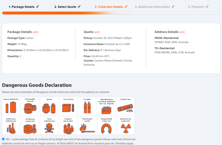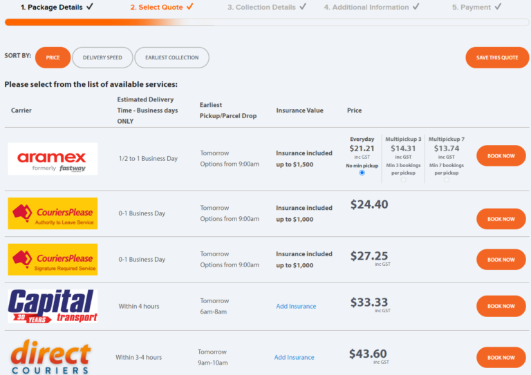 - Transdirect sẽ đưa ra danh sách các đơn vị vận chuyển và giá cước tương ứng