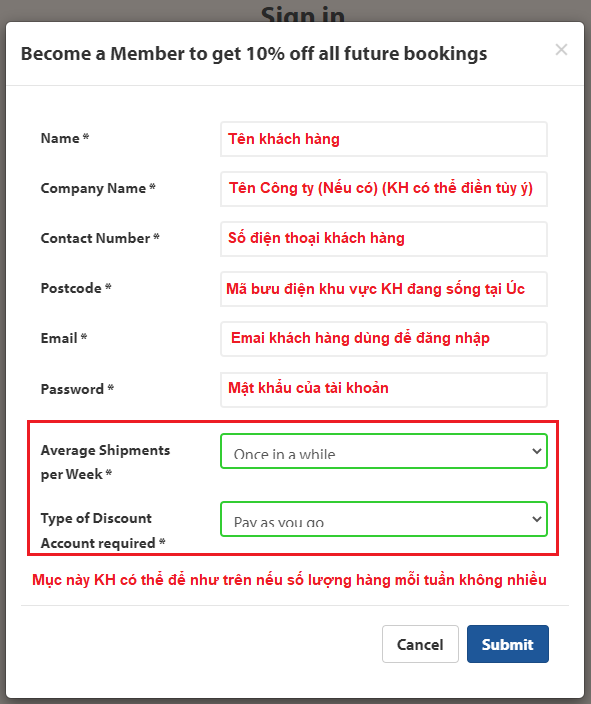 - Quý khách vui lòng điền các thông tin như bên dưới: